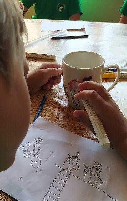 Programa skirta vaikams ir suaugusiems Programoje: - Ant popieriaus nusipiešime puodelio piešinio eskizą; - Perkelsime piešinį ant porcelianinio puodelio; - Savo sugalvotą piešinį spalvinsite specialiais, nuo porcelianinio puoduko nenusiplaunančiais markeriais; - Namo parsivešite nuostabų, pačių dekoruotą porcelianinį puoduką, iš kurio galėsite mėgautis pačia skaniausia arbata ar kava. Programos trukmė 1 val. Programos kaina 7 eur.