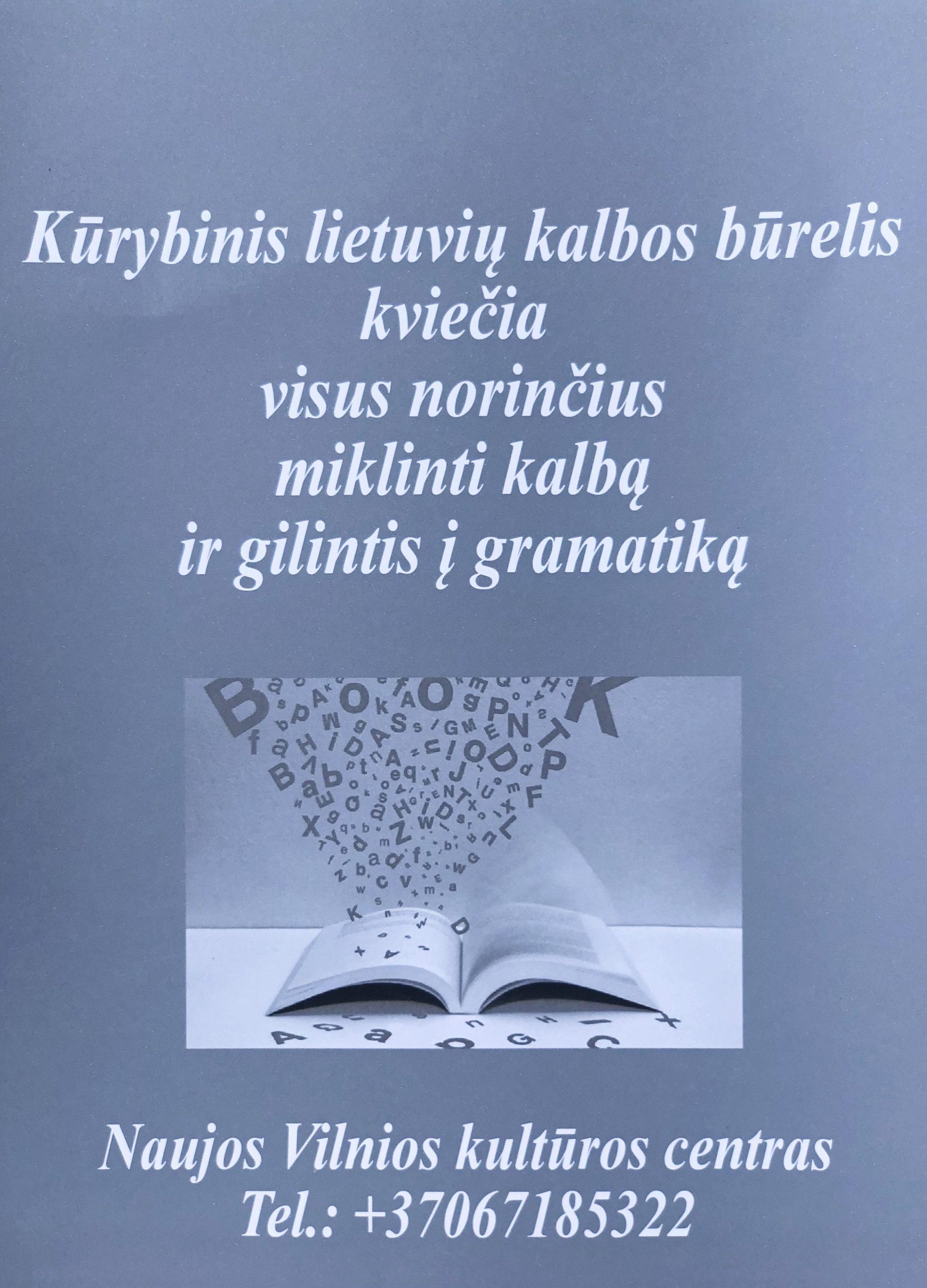Kviečiame į lietuvių kalbos lavinimo būrelį, vykstantį Naujosios Vilnios kultūros centre. Čia vaikai ir jaunimas tobulina kalbėjimo, rašymo bei skaitymo įgūdžius, gilina lietuvių kalbos žinias ir ugdo kūrybiškumą per įdomias ir įtraukiančias veiklas. Daugiau informacijos apie užsiėmimus ir registraciją galite sužinoti susisiekę su mumis! Ateikite ir tobulėkite kartu! |