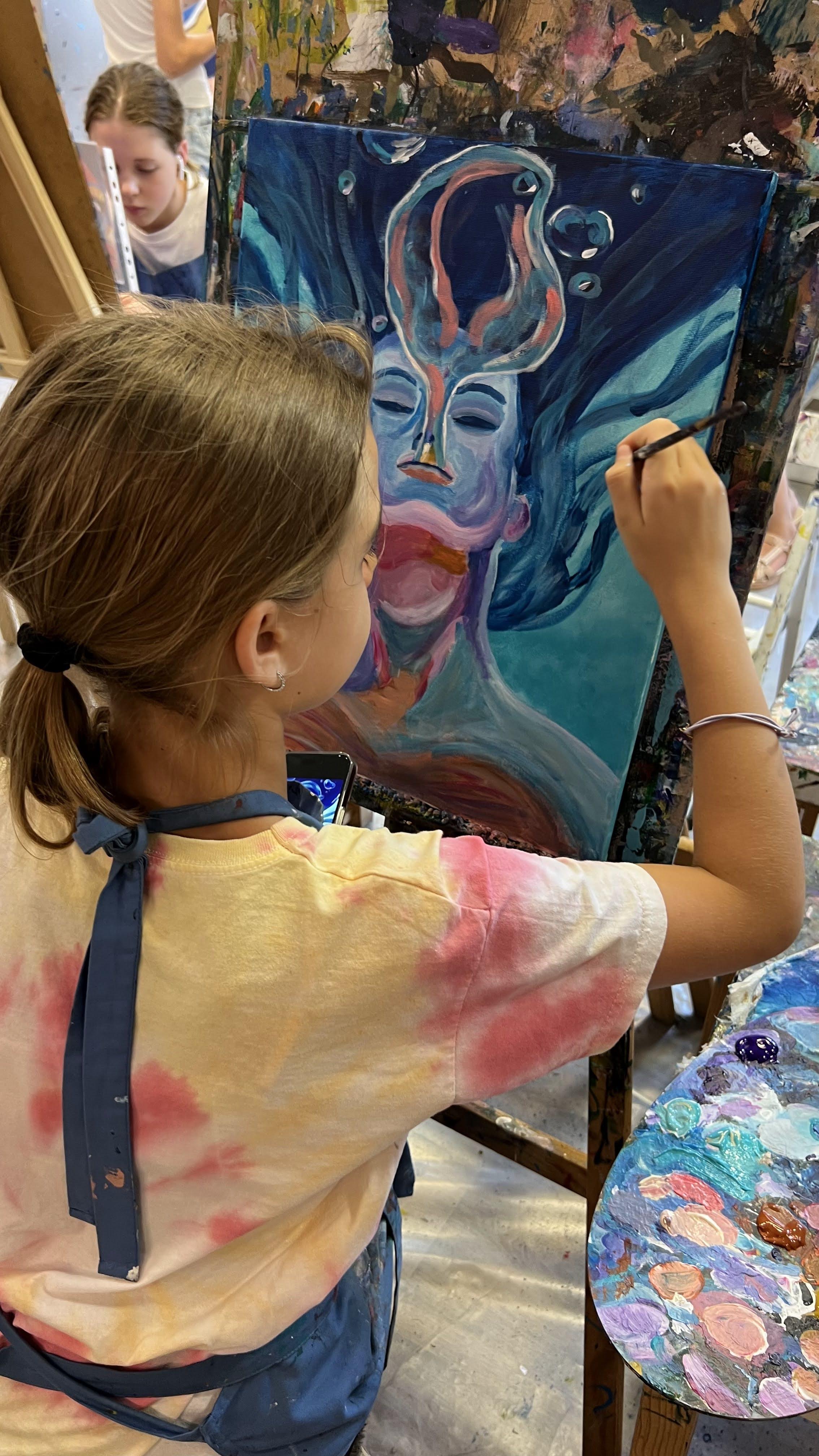 Ši kūrybinė tapybos stovykla, kurioje portretas bus tyrinėjamas kaip meninė forma ir kūrybinė interpretacija. Šios stovyklos metu dalyviai gilinsis į žmogaus veido struktūrą, proporcijas ir charakterį, tačiau kartu mokysis portretą perteikti ne tik realistiškai, bet ir abstrakčiau, drąsiau bei kūrybiškiau. Kūrybos procese vaikai ir paaugliai susipažins su portreto piešimo ir tapybos pagrindais: veido proporcijomis, pagrindinėmis formomis, šviesos ir šešėlių santykiu bei kompozicija. Įgiję šiuos pagrindus, dalyviai bus kviečiami interpretuoti portretą menine kalba – eksperimentuoti su spalvomis, formomis, linijomis ir kurti portretus, kuriuose atsiskleidžia emocija, nuotaika ir individualus meninis stilius. Stovyklos metu bus kuriami abstraktesni portretai, kuriuose svarbi tampa spalvos nuotaika, formų dinamika ar simbolinės detalės. Vaikai mokysis, kaip portrete galima perteikti ne tik žmogaus išvaizdą, bet ir charakterį, emociją ar kūrybinę idėją. Ši stovykla išsiskiria tuo, kad portretas čia tampa ne tik technikos, bet ir kūrybinio mąstymo studija. Dalyviai bus skatinami ieškoti savo meninio sprendimo, drąsiai interpretuoti veidą ir atrasti skirtingus būdus, kaip portretą paversti savitu kūriniu. Per savaitę dalyviai sukurs 2 portretų seriją, kurioje atsiskleis skirtingos žmogaus veido interpretacijos – nuo klasikinio piešimo iki kūrybiškesnių, abstraktesnių portreto sprendimų.Viena drobė skirta laisvai temai. Stovykla rekomenduojama vaikams ir paaugliams: