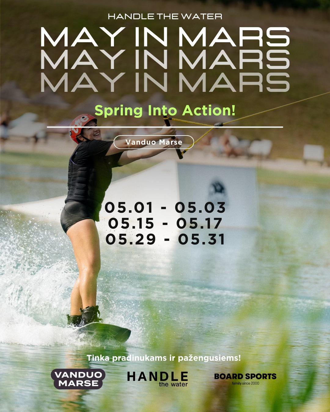 Tai energijos, progreso ir vasariškos nuotaikos kupinas savaitgalis visiems, norintiems išbandyti vandenlentes arba pakelti savo lygį. „Vanduo Marse“ stovykla kviečia pabėgti nuo kasdienybės ir pasinerti į aktyvų laiką ant vandens, kuriame svarbiausia – judėjimas, bendruomenė ir nepamirštamos patirtys. Stovyklos metu dalyviai treniruojasi grupėse pagal savo lygį, todėl kiekvienas gauna jam pritaikytą dėmesį ir naudingus patarimus. Per savaitgalį vyksta keturios grupinės treniruotės, kurios padeda kryptingai tobulinti techniką. Naujokams sudaromos atskiros grupės, leidžiančios saugiai pradėti nuo nulio ir greitai pajusti pirmuosius rezultatus. Viso savaitgalio metu suteikiamas neribotas plaukimo laikas – nuo penktadienio pietų iki sekmadienio vakaro, todėl galima maksimaliai išnaudoti laiką ant vandens. Vienas iš išskirtinių stovyklos momentų – „Night Ride“, naktinis plaukimas prožektorių apšviestame parke, sukuriantis unikalią ir įsimintiną atmosferą. Po aktyvių dienų dalyvių laukia poilsis ir bendravimas – jaukūs vakarai su bendraminčiais, laikas „Skoniai Marse“ erdvėje ir atsipalaidavimas pirtyje. Apgyvendinimas vyksta stilinguose parko nameliuose visai šalia vandens, todėl visa patirtis yra patogi ir vientisa. Tai savaitgalio stovykla, kurioje susijungia sportas, poilsis ir gera kompanija – puiki proga aktyviai pradėti vasarą arba dar labiau įsitraukti į vandenlenčių pasaulį.