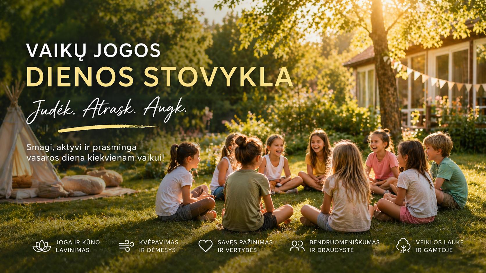 Kviečiame vaikus į dienos stovyklą, kurioje per gyvą patirtį, žaidimus ir kasdienes veiklas jie susipažins su jogiška gyvenimo filosofija.