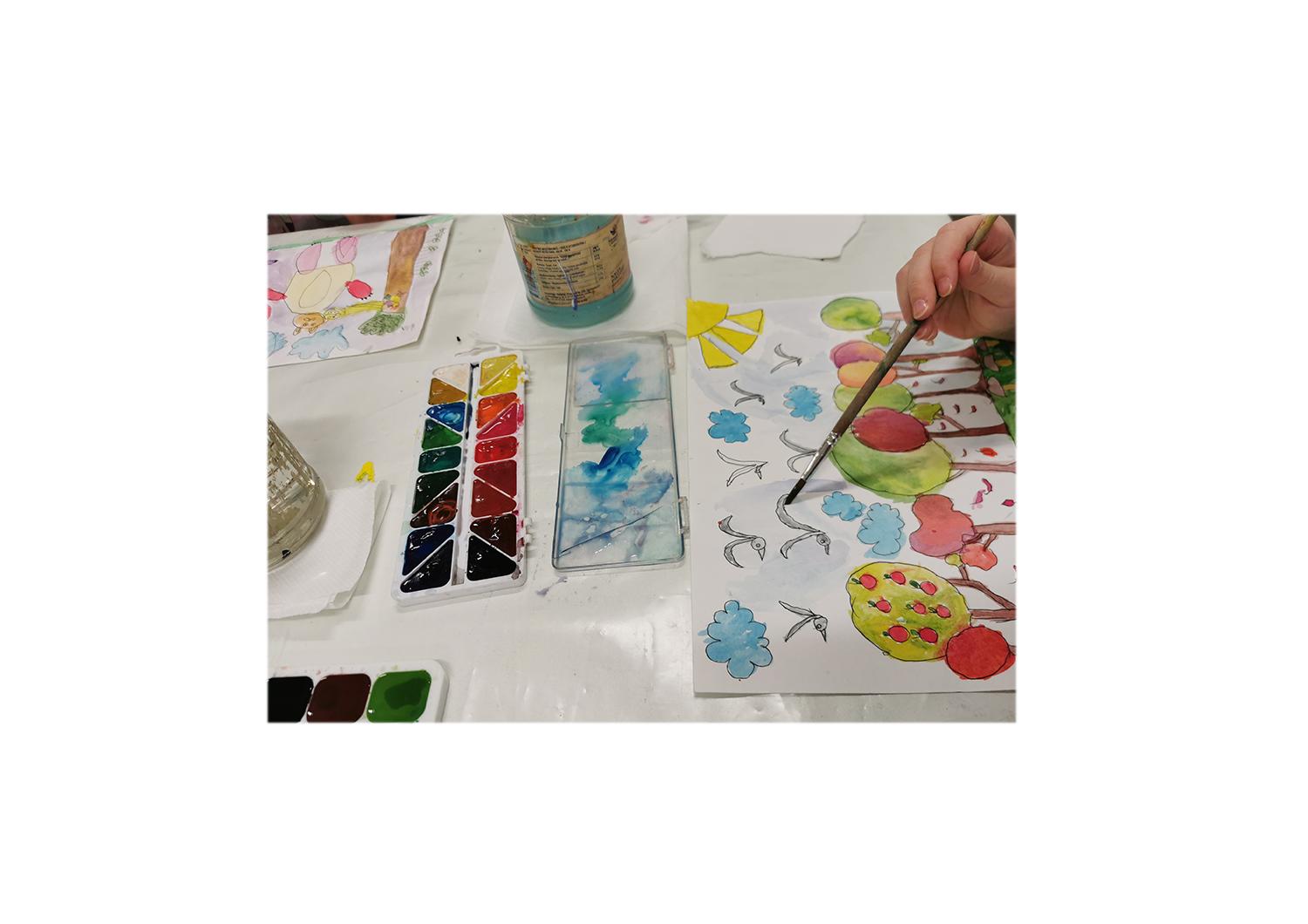 Dailės būrelis 4- 5-6 m. vaikams „SPALVIUKŲ DAILĖS STUDIJA“ veikia mūsų dailės studijoje „Linksmos splavos“. Grupės vaikų amžius 4,5- 5 - 6.5 m. Tai dailės studija ikimokyklinio amžiaus vaikams. Dailės studijoje dirba profesionalios dailininkės, turinčios patirties darbe su vaikais bei mėgstančios šį darbą. Užsiėmimuose vaikai piešia, tapo, lipdo ir išbando įvairias kitas dailės technikas bei medžiagas. Naudojame mažiems vaikams skirtas dailės priemones. Mums svarbu, kad pamokėlių metu vaiką suptų draugiška aplinka, jis pasitikėtų savimi, jaustųsi saugiai, turėtų galimybę pajusti tikrą kūrybos džiaugsmą ir vėl norėtų grįžti į studiją. Studijoje vaikai mokosi pažinti spalvas, jų galimybes, kaip jos maišomos. Dar mokome akvarelės liejimo, piešimo tušu galimybių, aplikuojame, kuriame spalvotus koliažus iš įvairių medžiagų. Jie supažindinami su tautodailės motyvais. Užsiėmimų metu dailininkės rodo dailės darbų ir kitų vaikų piešinių, dailininkų darbų reprodukcijas, kas įkvepia nupiešti vieną ar kitą piešinį. Pamokėlės metu studijos suteikiama galimybė vaikui savaip, nevaržomai vaizduoti pasirinktą temą, išbandyti vienus ar kitus dažus. Vaikai turi galimybę laisvai, kūrybiškai žaisti dažų potėpiais baltame popieriaus lape, piešti jiems svarbius vaizdus, kurti įvairias spalvų kompozicijas, ko paskatina su jais dirbanti dailininkė. Mažos grupės, grupėje 7-8-9 mokiniai. Jei registruojasi daugiau, kuriama nauja grupė. Dėmesys kiekvieno mokinio individualiems gebėjimams, užduotys pritaikomos pagal mokinio amžių. Mūsų adresas: Laisvės pr. 77C-55 (2 aukštas), Vilnius. Patogu privažiuoti mokiniui, prie pat studijos stotelė: Troleibusai: 16, 19. Autobusai: 2G, 46, 48, 55, Netoli ateiti nuo Ukmergės gatvės, Stasio Lozoraičio stotelės. Autobusai: 5, 24, 52, 87.