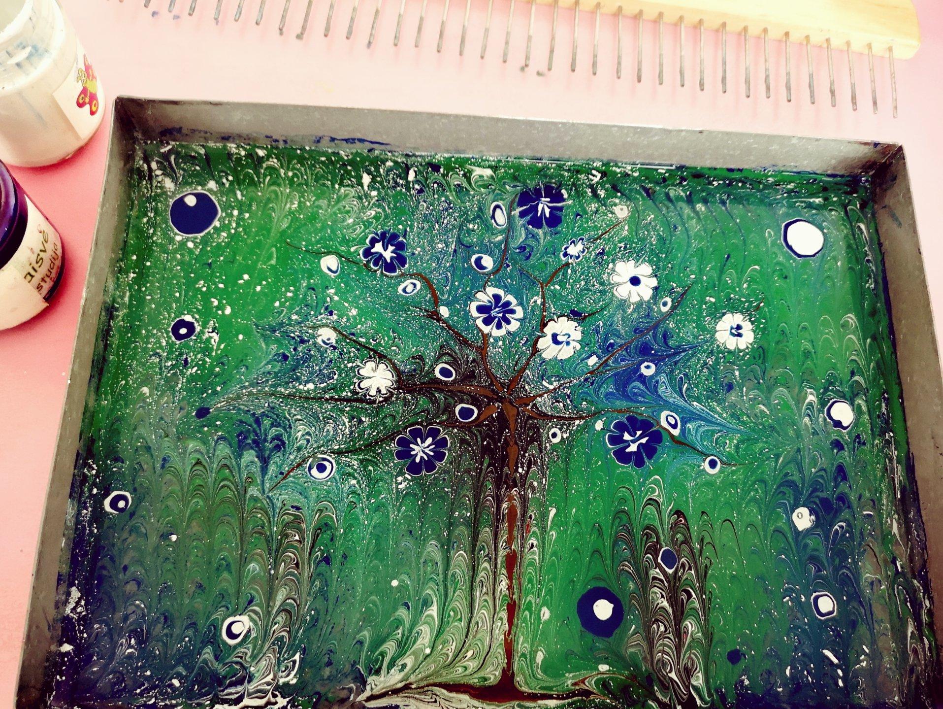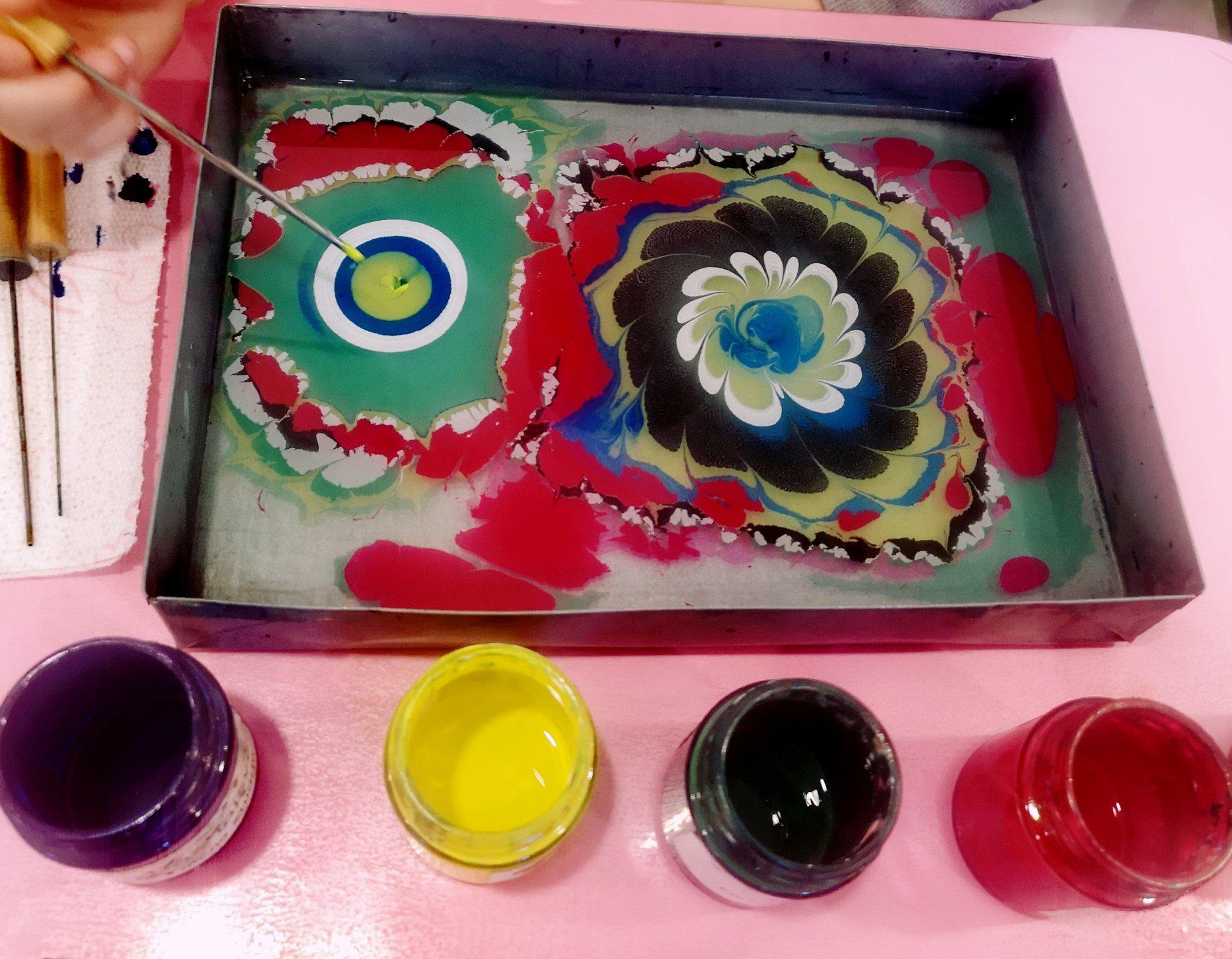 Tai ypatinga dėmesio koncentravimo, minčių nuraminimo, vidinio kūrybinio potencialo atskleidimo terapija. Išlaisvinkime kūrybiškumą išbandydami šią nepakartojamą meno rūšį, nes pakartoti ir nupiešti identišką piešinį tiesiog neimanoma. Piešinys turi išliekąmąją vertę, jis nuo vandens perkeliamas ant popieriaus. UŽSIĖMIME: *Trumpa ebru meno istorija, *Tapyba ant vandens - ebru, *Piešinių perkėlimas ant popieriaus |