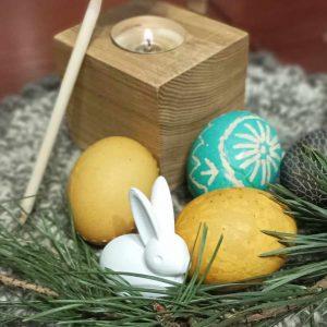 Naudojamos priemonės: rankų darbo mediniai stoveliai vaškui lydyti ir arbatinei žvakei įstatyti, bičių vaškas, rankų darbo mediniai vašeliai su metalinėmis galvutėmis vaško raštams išgauti, maistiniai dažai kiaušinių dekoravimui, spausdinti lapai su raštų pavyzdžiais. Visas priemones (dažus, vašką, dažymo adatėles) edukatorė atsiveža su savimi. Vaikai tik turi turėti po vieną virtą kiaušinį. Praktinės ir kūrybinės užduotys pritaikytos atsižvelgiant į mokinių amžių ir gebėjimus.