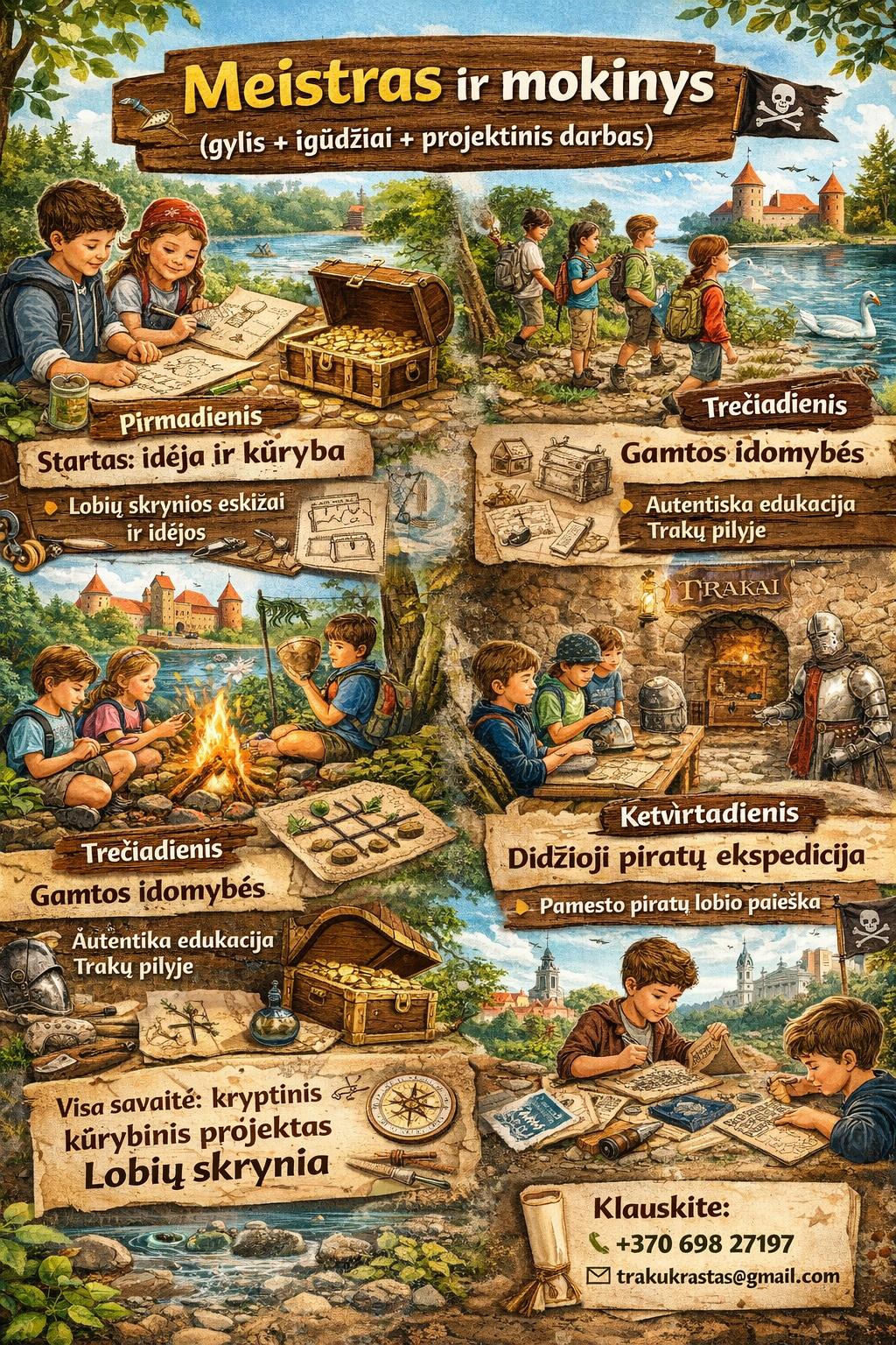 Pamesto piratų lobio paieška – žygis su užduotimis Trakuose. 👉 Naratyvas sujungiamas su kuriamu projektu.