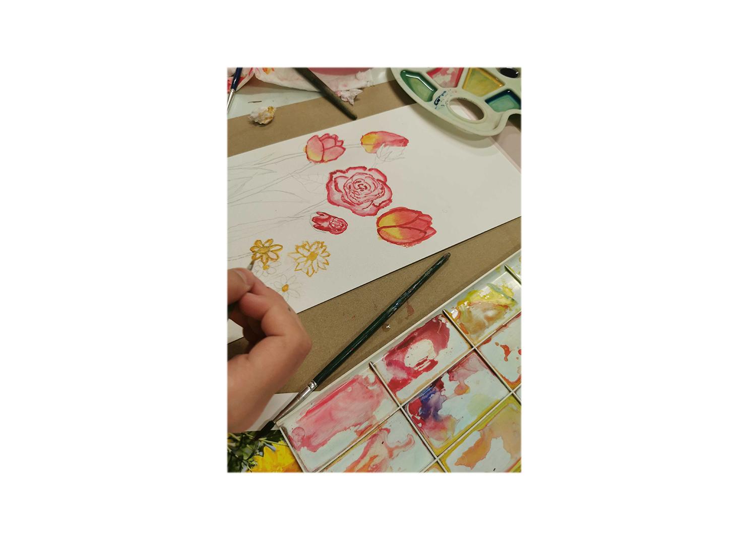 Mokomės maišyti spalvas, tapyti guašu, akrilu, gašo tempera, pastelėmis (aliejinėmis ir sausosiomis), kurti akvarelės darbelius, mokyti lieti akvarelę laisvai, nevaržomai. Dailininkai supažindina su tušo technika: kaligrafija, piešimu plunksnele, liejimu tušu.