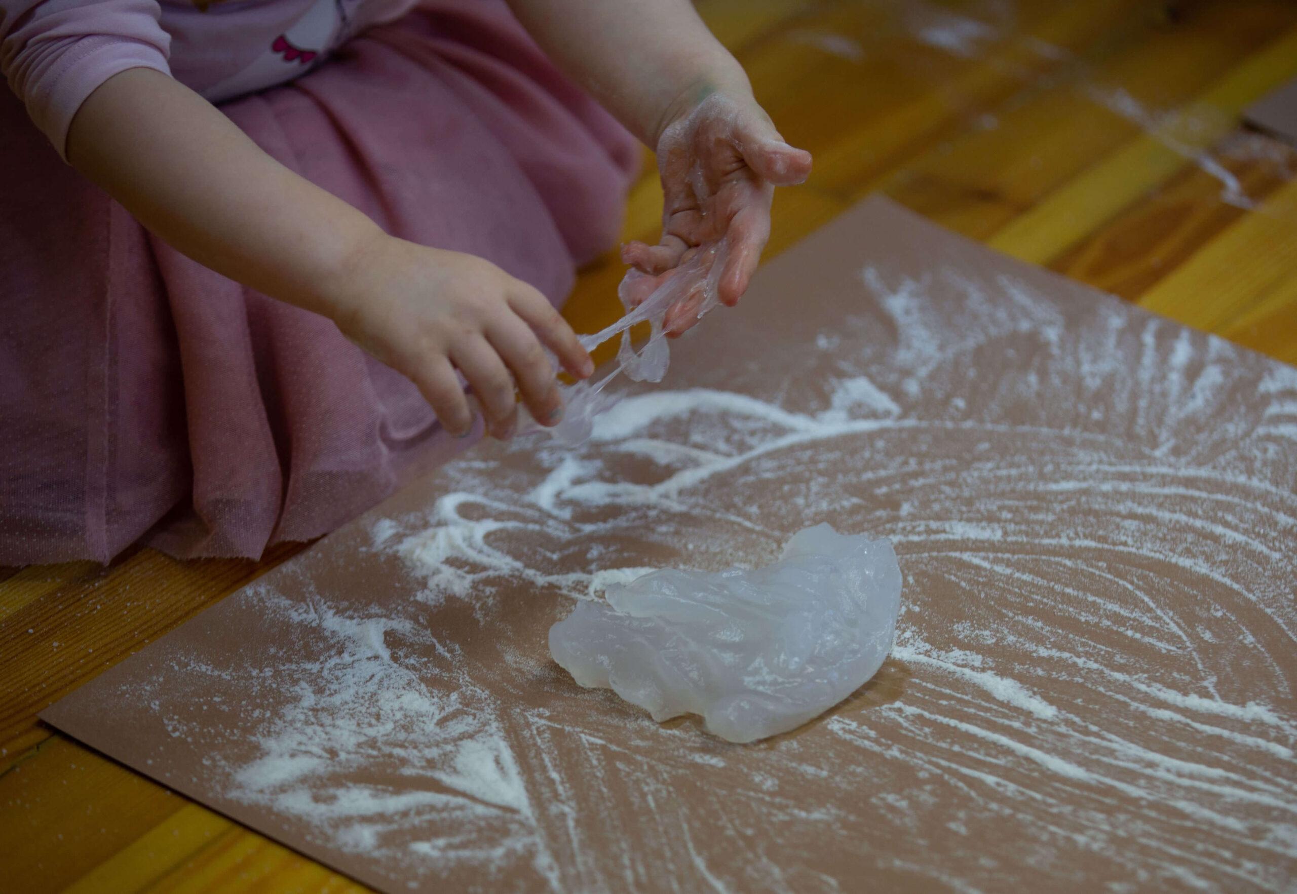 Užsiėmimuose naudojamos sertifikuotos ir saugios priemonės arba specialiai mažiausiems iš saugių produktų pagaminta tešla, spalvota dažų masė.