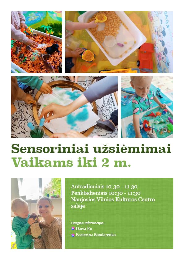 Kviečiame mažuosius prisijungti prie sensorinių užsiėmimų Naujųjų Vilniaus Kultūros Centre! Šie užsiėmimai yra skirti vaikams iki 2 metų amžiaus ir padeda skatinti jų pažinimo, motorikos bei emocinį vystymąsi per žaidimus, garsus, spalvas ir tekstūras. Kiekvienas užsiėmimas sudarytas taip, kad būtų įdomus ir naudingas jūsų vaikučiui, lavinant jo pojūčius ir kūrybiškumą. Džiaugsmas ir atradimai laukia kiekviename žingsnyje!