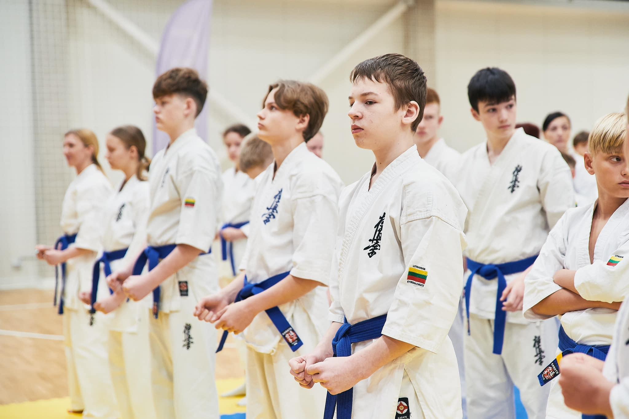 Karate treniruotės vaikams (8–10 m. amžiaus, pradedantiesiems) paprastai būna struktūruotos taip, kad būtų įtraukiamos įvairios fizinės ir psichinės veiklos, skirtos lavinti tiek kūną, tiek charakterį. Šiame amžiuje vaikai dar tik pradeda mokytis karate pagrindų, todėl treniruotės būna lengvos, žaismingos ir orientuotos į pagrindinių judesių atlikimą, discipliną ir komandą. Tipiška karate treniruotė vaikams apima šiuos etapus: pirmiausia atliekamas apšilimas, kuriame vaikai atlieka bendrus fizinius pratimus, tokius kaip bėgimas, šokinėjimai, tempimo pratimai, kad kūnas būtų paruoštas intensyvesnėms fizinėms pastangoms. Po to seka pagrindiniai karate judesiai, kuriuos sudaro stovo formavimas, įvairių smūgių ir blokų mokymasis, bei judesių koordinavimas. Vaikai mokosi atlikti paprastus judesius, tokius kaip kirčiai, smūgiai, blokai, bei derinti juos su žingsniavimu. Kiekviena treniruotė gali apimti ir žaidybinę veiklą, kuri padeda vaikams lavinti judesių greitumą, koordinaciją ir komandinį darbą. Be fizinių įgūdžių, karate treniruotės skatina ir psichinį vystymąsi: kantrybę, pagarbą kitam, discipliną ir atsakomybę. Pabaigoje treniruotės dažnai būna atsipalaidavimas, kur vaikai atlieka tempimo pratimus ir aptaria tai, ką išmoko, suteikiant galimybę išsakyti savo pastebėjimus bei reflektuoti apie treniruotę.