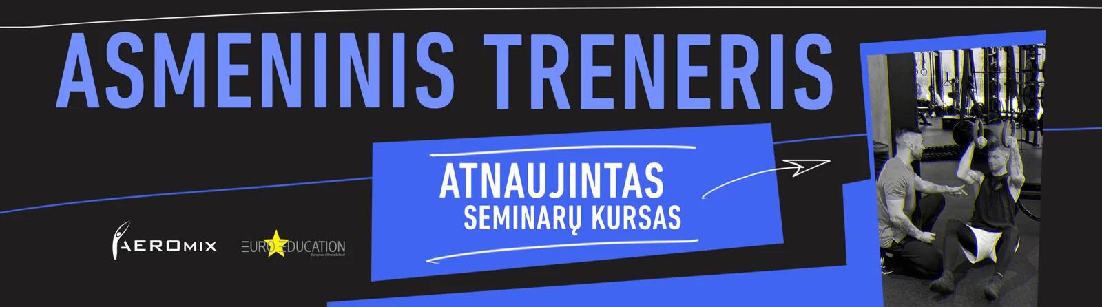 KURSAS ”ASMENINIS TRENERIS” (Euroeducation) organizuojamas kartus su Europos mokykla. Mokymų metu Jūs įgysite daug praktinių žinių, įgūdžių bei Europos mokyklos Asmeninio Trenerio licenciją (Euroeducation). Kursas ”Asmeninis Treneris” vyksta mišriuoju būdu: 4 praktiniai seminarai po dvi dienas (Asmeninis Treneris I lygis+ II lygis+ III lygis, Testavimas) bei nuotolinis teorinių žinių mokymas. Mokymų metu užtikriname profesionalią pagalbą, asmeninį dėmesį, motyvaciją draugiškoje aplinkoje. Kam skirti mokymai? Asmenims, siekiantiems dirbti sveikatinimo veikloje ne tik Lietuvoje, bet ir užsienyje, įgyjant Europos mokyklos licenciją. Asmenims, turtintiems KKSD leidimus ar turintiems sporto krypties aukštojo mokslo diplomą, tačiau norintiems patobulinti savo kompetencijas įgyjant daugiau praktinių žinių Pažangiems Sporto klubų klientams, norintys susipažinti su treniravimo principais, metodika, treniruočių specifika. Sveikatos specialistams, fizinio ugdymo mokytojams, norintiems patobulinti savo žinias. Koks išduodamas sertifikatas? Po kiekvieno praktinio seminaro išduodami sertifikatai, kad išklausėte kursą ir įgijote kompetencijas. Baigę visą bazinių seminarų ciklą, t.y. visus 4 praktinius seminarus bei išlaikę teorijos testą nuotoliniu būdu, Jūs turite galimybę laikyti egzaminą licencijai įgyti. Egzaminas susideda iš praktinės dalies bei teorijos testo, vertinimo kriterijai bei reikalavimai bus pateikiami seminarų metu. Dalyvis, sėkmingai išlaikęs egzaminą įgyja Euroeducation B lygio licenciją, kuri pripažįstama ES šalyse pagal kiekvienoje šalyje galiojančius reikalavimus. Smulkesnė informacija bei reikalavimai paaiškinami seminarų metu. MOKYMŲ PRIVALUMAI: Profesionalūs: mokysitės iš ekspertų ir kvalifikuotų specialistų! Praktiški: įgysite daug praktinės patirties darbui sveikatingume! Motyvuojantys: Įgysite žinias, kurios atvers naujas galimybes! Kūrybiški: galimybė plėtoti naujus unikalius užsiėmimus, treniravimo būdus! Tarptautiškumas: įgysite Europos mokyklos licenciją, tarptautinį pripažinimą! Individualus koregavimas ir treniruočių programų kūrimas!