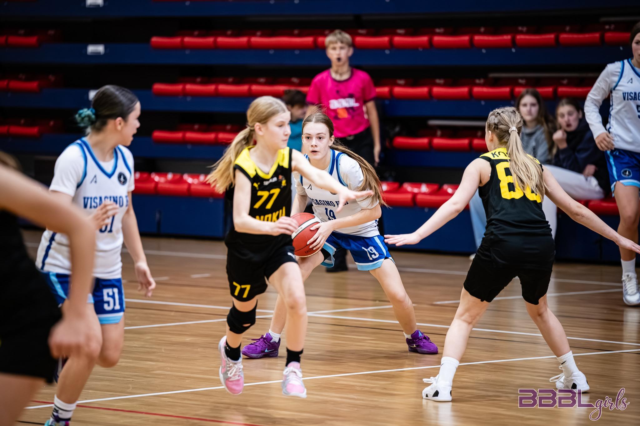 Šios amžiaus grupės treniruotės orientuotos į tikslingą technikos, fizinių savybių ir žaidimo supratimo gilinimą. Mergaitės dirba su pažangesniais kamuolio valdymo pratimais, lavina metimų tikslumą, greitą orientaciją aikštėje ir sprendimų priėmimą žaidimo situacijose. Treniruotėse taikomi tiek individualūs įgūdžių tobulinimo metodai, tiek komandiniai deriniai, kurie padeda suvokti žaidimo logiką ir taktiką. Didelis dėmesys skiriamas fiziniam pasirengimui – stiprinama ištvermė, greitis, jėga ir koordinacija, kad mergaitės galėtų žaisti intensyvesniu tempu. Treneriai nuosekliai skatina discipliną, atsakomybę ir sportinę motyvaciją, pabrėždami progreso svarbą bei komandinio darbo vertę. |